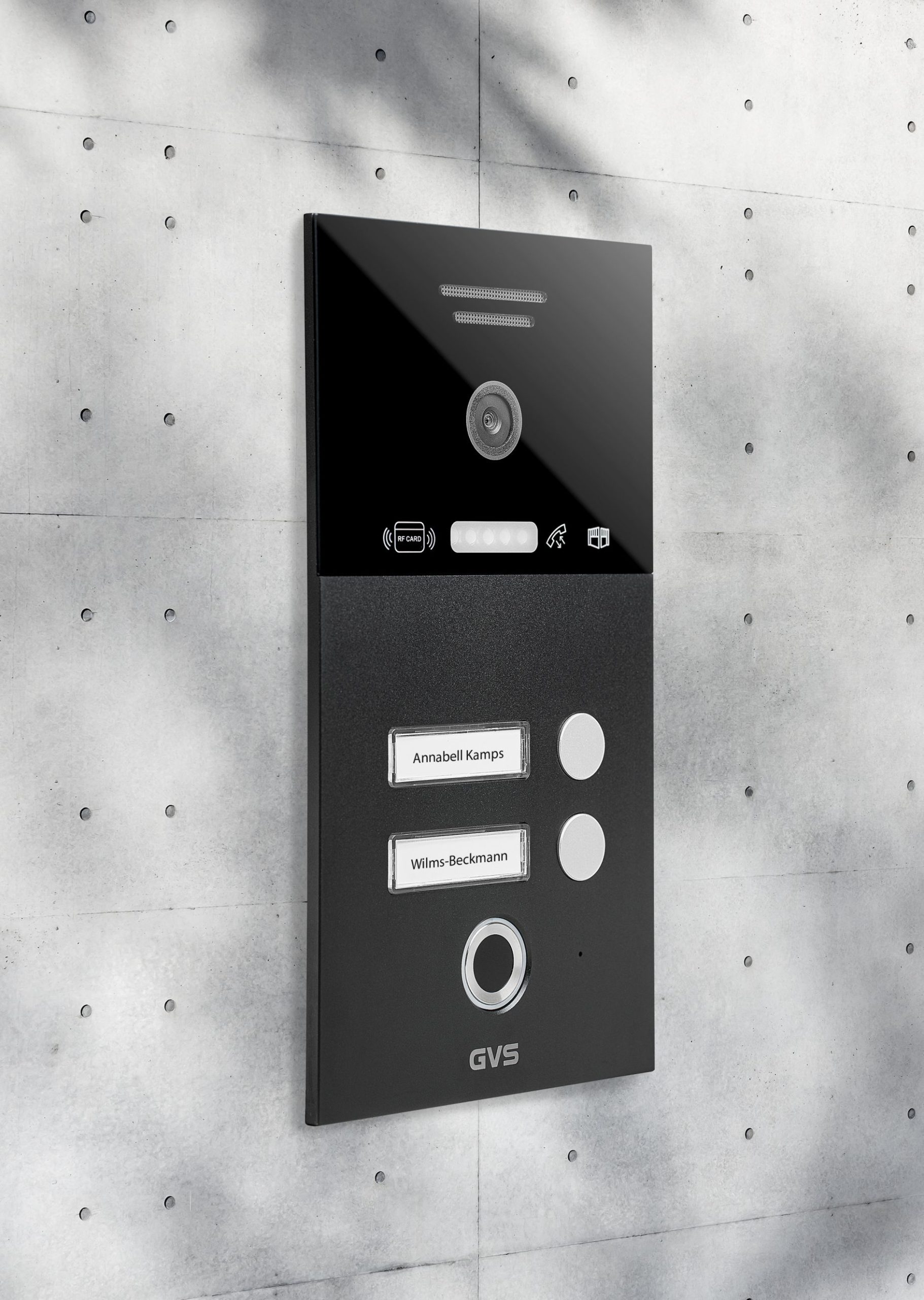 1x Video-Türstation Anthrazit (RAL7016) mit RFID und Fingerprint AVT2024FR – 2 Klingeltaster mit Montagerahmen