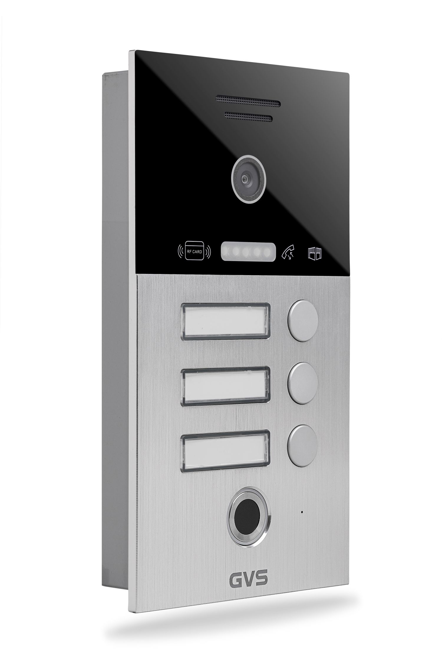 1x Video-Türstation mit RFID und Fingerprint AVT2024FR – 3 Klingeltaster mit Montagerahmen
