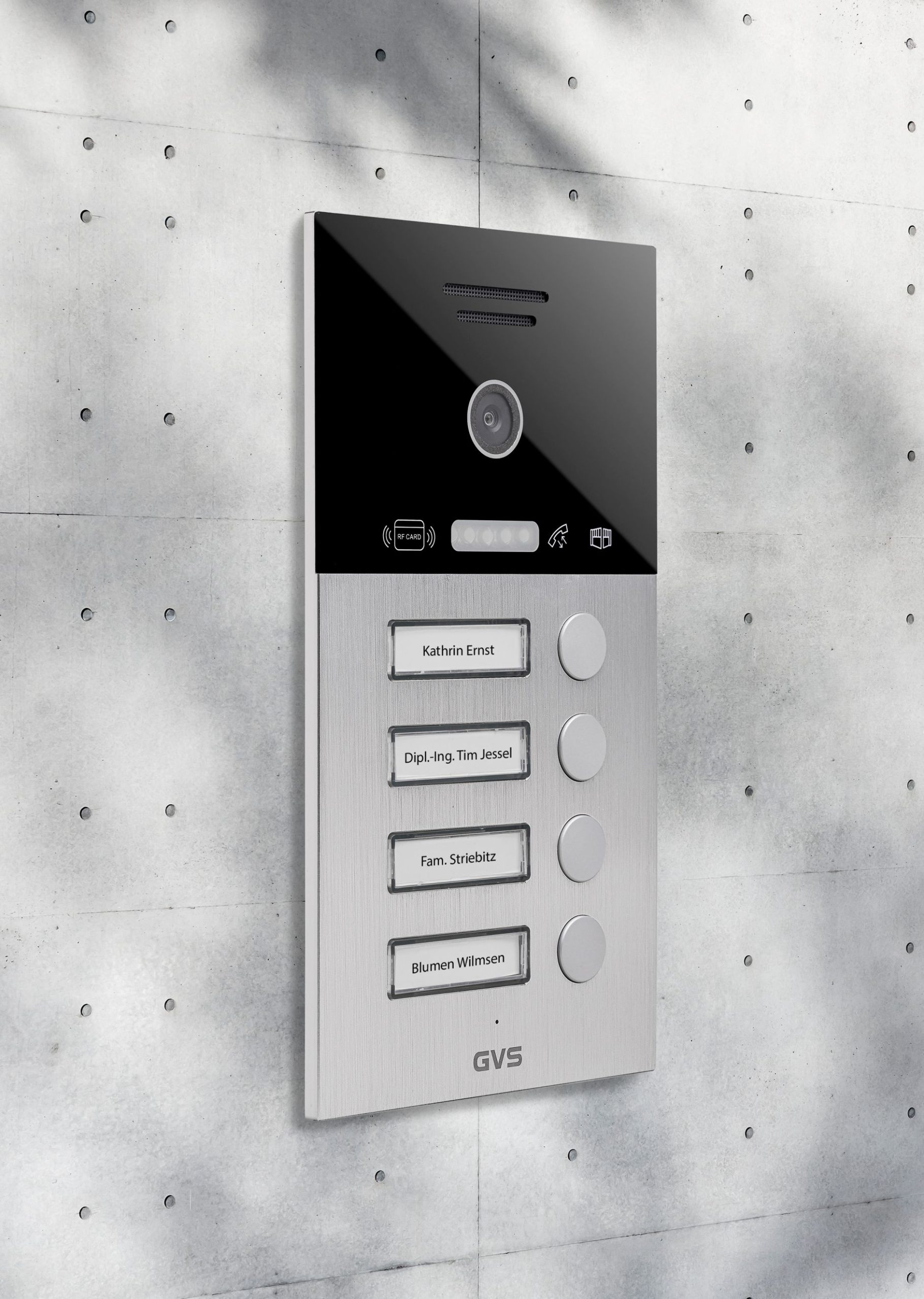 1x Video-Türstation mit RFID AVT2024R – 4 Klingeltaster mit Montagerahmen